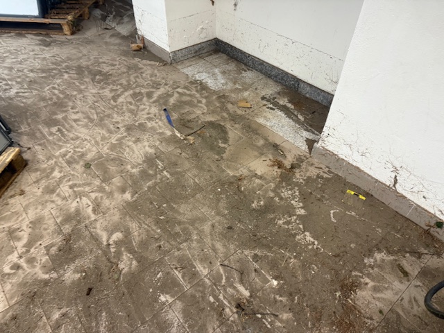 Pulizia serramenti , vetri , servizi igienici rivestimenti e sanitari, e lavaggio meccanico della pavimentazione in gres-porcellanato effetto legno per la rimozione dei residui di cemento .