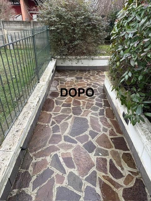 Pulizia serramenti , vetri , servizi igienici rivestimenti e sanitari, e lavaggio meccanico della pavimentazione in legno , pulizia meccanica terrazzi.